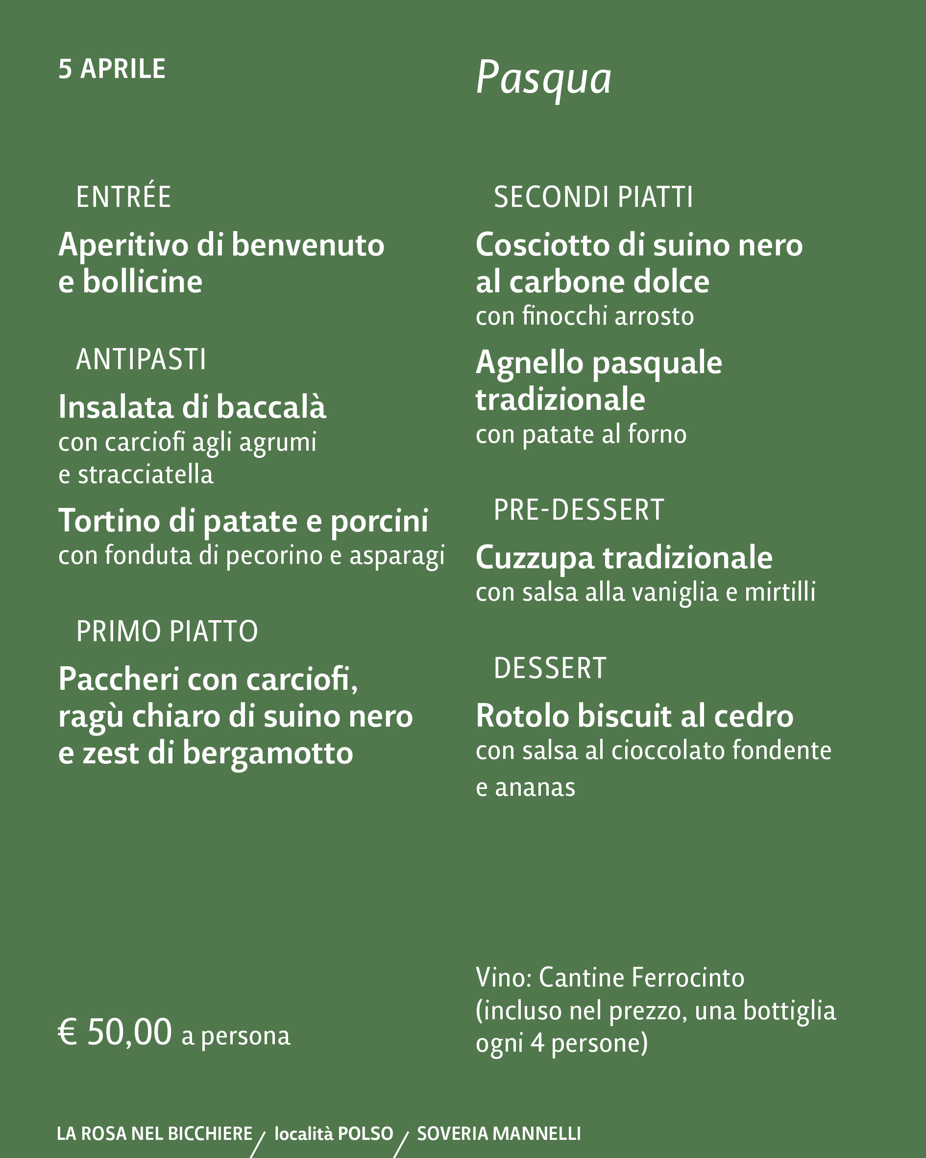 Dal baccalà agli agrumi, all’agnello pasquale, fino ai dessert profumati al bergamotto, cedro e liquirizia.